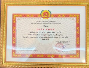 Đồng chí Giang Thanh Thủy – Bí thư Chi bộ, Hiệu trưởng nhà trường đã được Đảng bộ phường tặng Giấy khen đạt tiêu chuẩn cán bộ “Hoàn thành xuất sắc nhiệm vụ” tiêu biểu năm 2025.